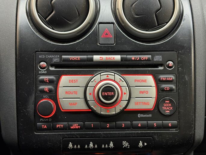 Audiosysteem en navigatiesysteem zijn gecombineerd. Zo wordt zelfs gesproken route-informatie een luisterervaring! En dankzij bluetooth klinkt uw favoriete playlist geweldig. Met de automatische airconditioning selecteert u de gewenste temperatuur. Het systeem doet de rest. Superstrak parkeren wordt een eitje dankzij de parkeersensoren. Het drukke verkeer eist onderweg al uw aandacht op. Daarom is het goed dat deze Nissan is voorzien van diverse systemen die u assisteren tijdens de rit. Een automatisch inschakelbare verlichting neemt het waar als het donker wordt of gaat schemeren, en schakelt dan automatisch de verlichting in. Op dezelfde manier "ziet" de regensensor de eerste spatjes regen en schakelt dan de ruitenwissers in, en als het harder gaat regenen zet hij de ruitenwissers ook in een snellere stand. De cruise control betekent gemak, comfort en zuinig rijden. Deze Nissan is voorzien van lederen stuur, centrale deurvergrendeling met afstandsbediening en lederen versnellingspook.