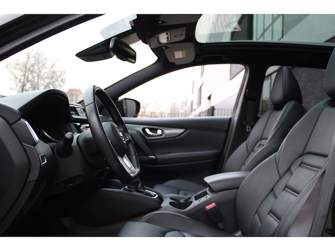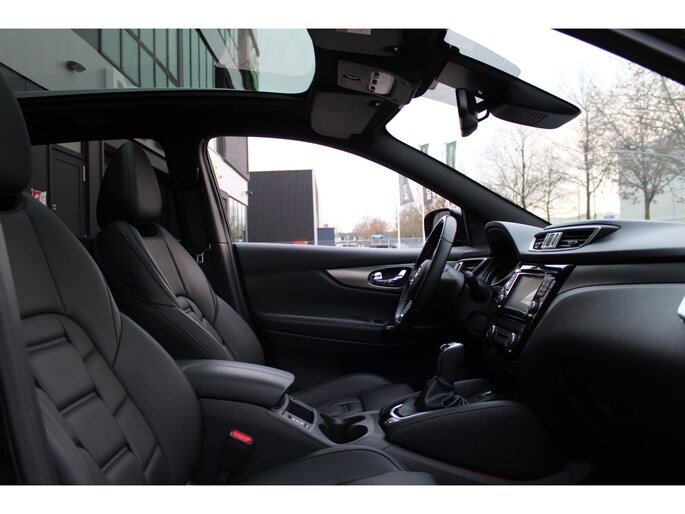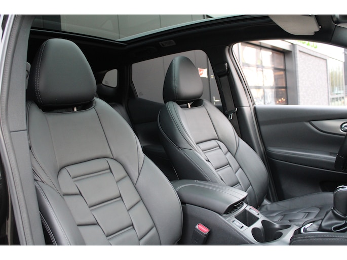'Innovation that excites' omschrijven ze bij Nissan het rijgevoel. En terecht, want deze Japanner loopt al jaren voorop in techniek. De aandrijving van deze Nissan wordt verzorgd door een viercilinder benzinemotor en een automatische transmissie. Leren bekleding versterkt de topklasse uitstraling van het interieur. Tijdens gure dagen is het prettig zitten in de verwarmbare voorstoelen. Vergezichten krijgen een extra dimensie door het glazen panoramadak. Verder is de Nissan uitgerust met: 19 inch lichtmetalen velgen, LED koplampen, donker getint glas achter, in delen neerklapbare achterbank, LED-achterlichten en verstelbare lendensteunen.