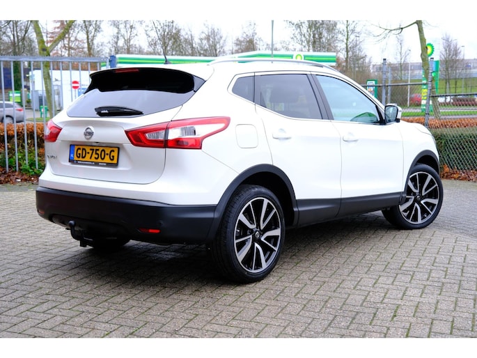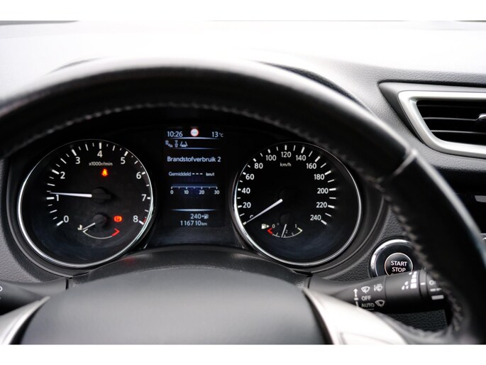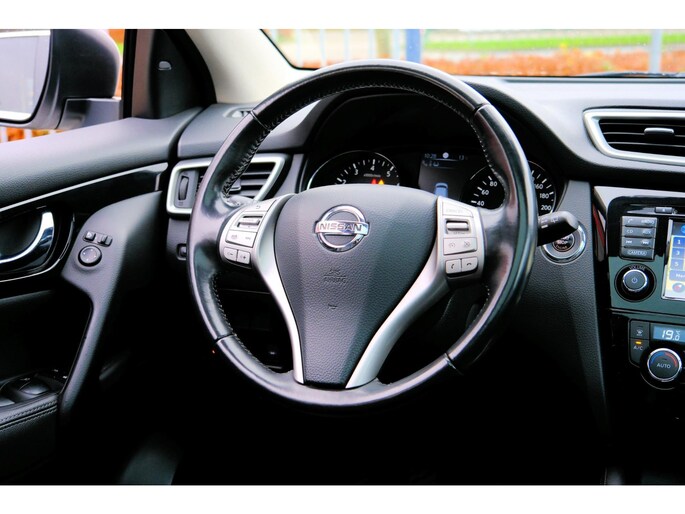 Met de 360 graden camera op deze auto wordt het rijden een heel stuk veiliger, dankzij het optimale zicht dat het biedt. De auto is voorzien van een trekhaak en is een uitstekende caravantrekker. In een auto als deze kunt u niet zonder automatische airconditioning, zodat de temperatuur altijd goed is. Kom-maar-kom-maar...ho! Zo eenvoudig is het voordeel van parkeersensoren. En zo behulpzaam! Achter het stuur van deze Nissan bent u niet alleen. De auto kijkt als het ware met u mee tijdens de rit. De regensensor schakelt de ruitenwissers in als het nodig is en de automatisch inschakelbare verlichting doet de lichten voor u aan. Deze auto is voorzien van navigatiesysteem, DAB ontvangst, cruise control, keyless entry, automatisch dimmende binnenspiegel en lederen stuur.