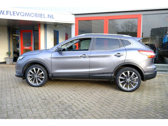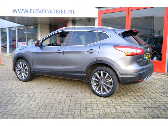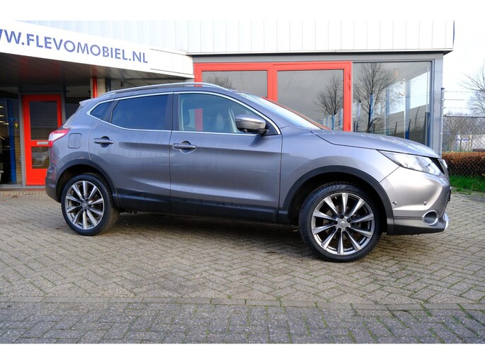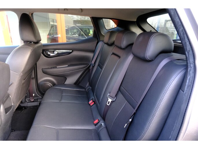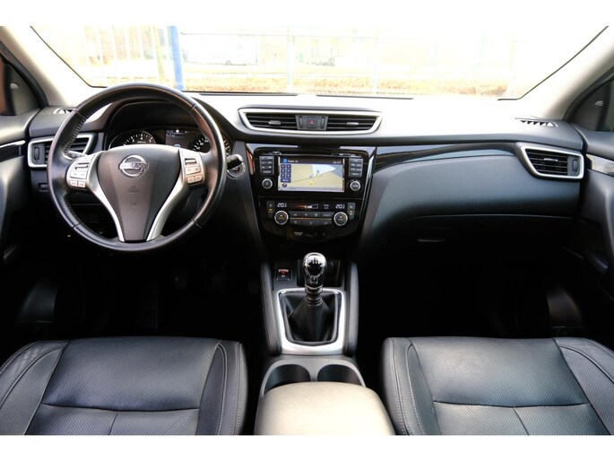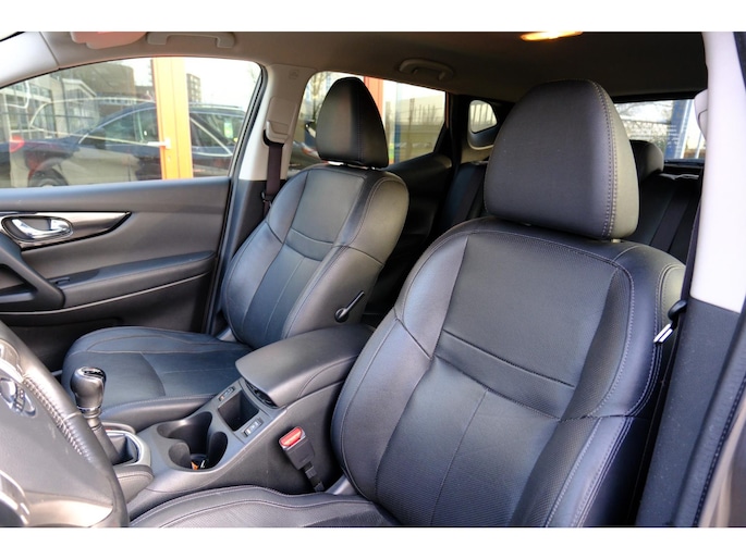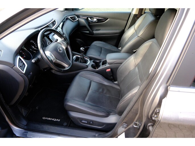 Alle technologie in de Nissan Qashqai is er op gericht om uw rit veilig en gemakkelijk te laten verlopen. De aandrijving van deze Nissan wordt verzorgd door een viercilinder motor en een handgeschakelde versnellingsbak. Binnenin zien we een fraai afgewerkt lederen interieur. Lekker hoor, die verwarmbare voorstoelen. Helemaal op koude dagen. Het glazen panoramadak laat meer licht binnen in het interieur en zorgt voor een magnifiek uitzicht naar buiten. Tot de voorzieningen van deze auto behoren LED koplampen, warmtewerend glas en in delen neerklapbare achterbank.
