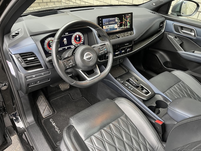 Laat u niets wijsmaken, deze Nissan Qashqai biedt alles wat u van een auto verlangt. De auto heeft een opmerkelijk lage kilometerstand van slechts 19060 Het zal niet lang meer duren totdat benzinerijden uit de tijd is. Maar voor nu is dit de beste oplossing: een combi van elektrisch en brandstof, met een hybride motor. Houdt u van een luxe uitstraling? Dan is het lederen interieur een heel aantrekkelijke extra! Deze Nissan Qashqai legt bestuurder én bijrijder compleet in de watten. De verwarmbare voorstoelen zijn voorzien van massagefunctie. De bagageruimte is toegankelijk via een comfortverhogende elektrische achterklep. Het panoramadak zorgt voor zicht, licht en een enorm ruimtelijk gevoel. Natuurlijk kunt u zonder. Maar waarom? Lekker toch, zo'n verwarmd stuurwiel? De koplampen zijn voorzien van matrix LED-verlichting waarmee u aanzienlijk verder kan kijken in het donker. Het systeem past zelf de lichtstraal aan op het moment tegenliggers verblind kunnen worden. Bij de uitrusting van deze auto horen onder meer 20 inch lichtmetalen velgen, dakspoiler, extra getint glas, in delen neerklapbare achterbank, LED-achterlichten en verstelbare lendensteunen.