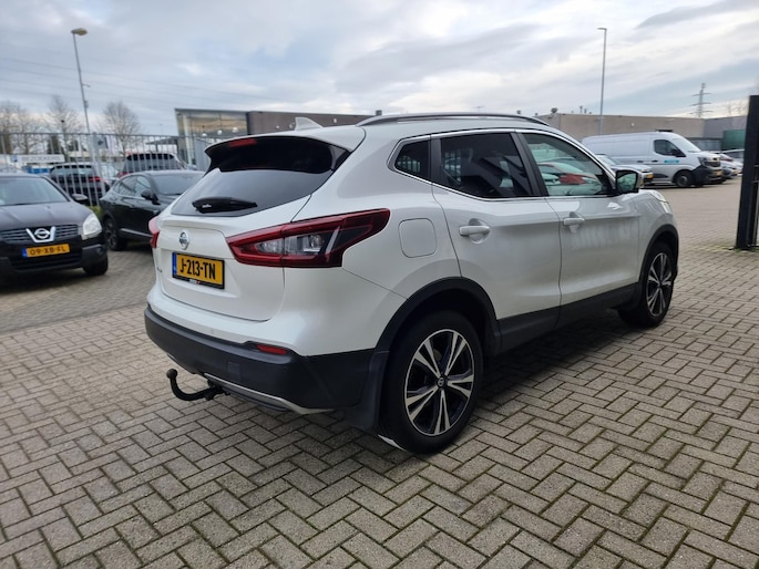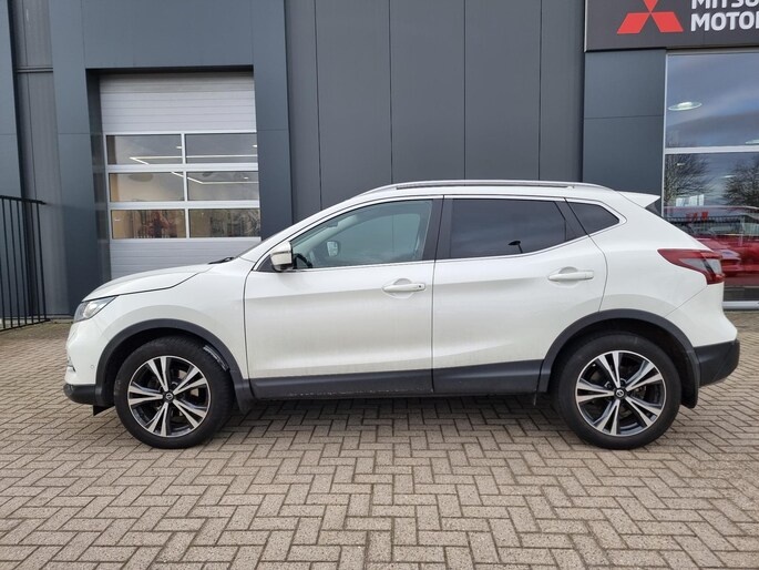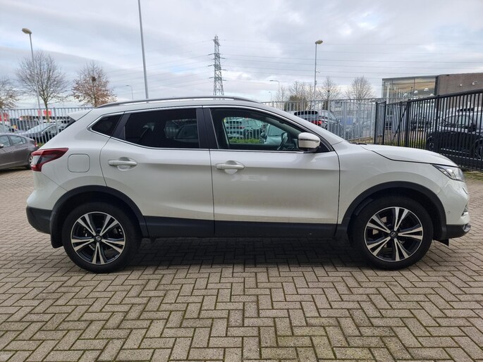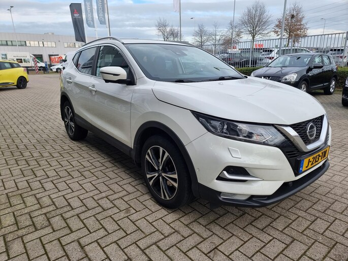 Omdat rijden een plezier mag zijn, staat deze Nissan Qashqai enthousiast te glimmen in de showroom. Technisch in topconditie, strak in de lak... echt een droomauto! In deze auto vindt u een benzinemotor en een automatische transmissie. Deze Nissan Qashqai heeft verwarmbare voorstoelen, voor zowel bestuurder als bijrijder. Door het glazen panoramadak heeft u een weidse zichthoek en geniet u van licht en een gevoel van ruimte. In deze auto profiteert u onder andere ook van: 18 inch lichtmetalen velgen, LED-dagrijverlichting, extra getint glas, in delen neerklapbare achterbank, LED-achterlichten en verstelbare lendensteunen.