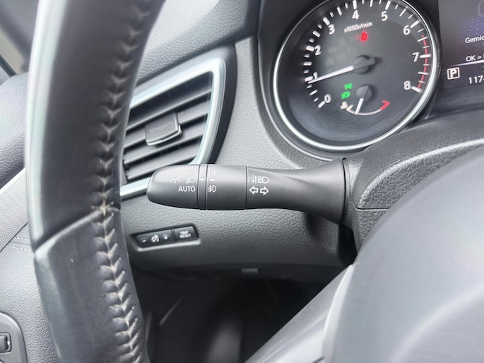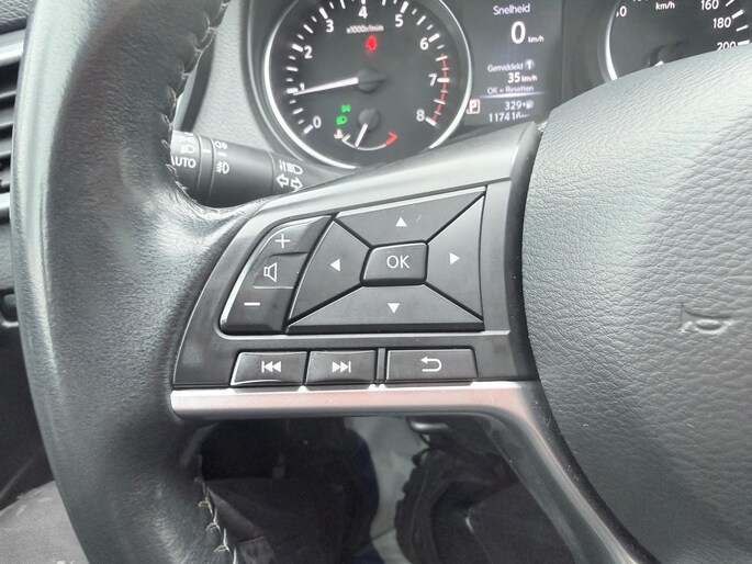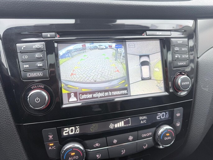 Of u nu achteruit rijdt, parkeert of een smalle straat inslaat, de 360 graden camera op deze auto, mogelijk gemaakt door vier camera's, biedt een perfect beeld van uw omgeving. Onderweg kunt u veilig genieten van het audio-installatiesysteem met DAB-radio en het full map navigatiesysteem. Want in deze Nissan bedient u ze vanaf het stuurwiel. Dankzij automatische airconditioning is het interieur behaaglijk warm of verfrissend koel. De parkeersensoren registreren alles. Ook dat ene paaltje dat net buiten uw gezichtsveld valt. De automatisch inschakelbare verlichting en regensensor zorgen dat onderweg automatisch de verlichting en de ruitenwissers worden ingeschakeld. Daarmee nemen ze u veel werk uit handen. De Nissan is standaard voorzien van: cruise control, keyless entry, automatisch dimmende binnenspiegel en lederen stuur en versnellingspook.
