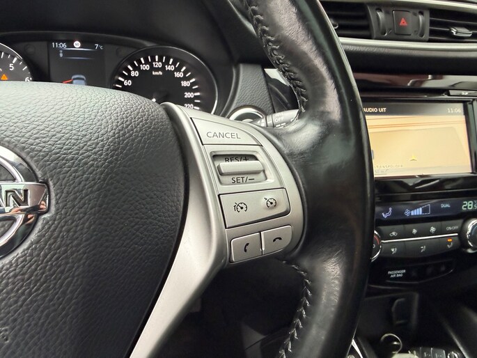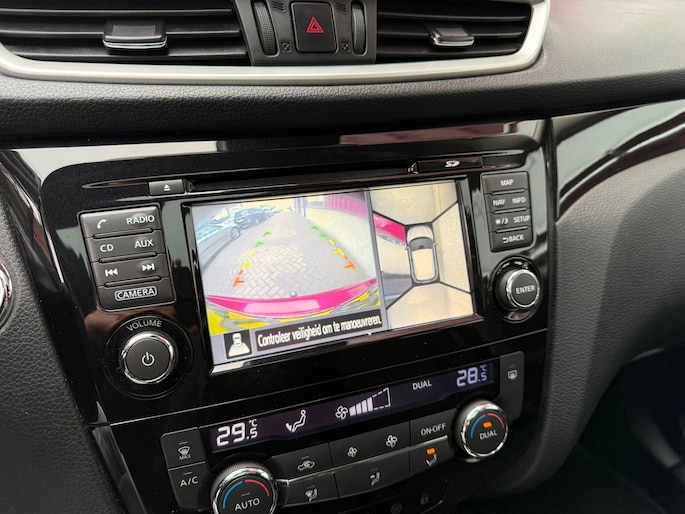 Het inventieve 360 graden camerasysteem op deze auto heeft de functie om u assistentie te bieden in nauwe ruimtes en straten, waar het achteruit rijden vaak een uitdaging is. Nooit meer de weg zoeken en ontspannen arriveren bij uw reisdoel. Met het navigatiesysteem zit u veilig en ontspannen in de auto. De automatische airconditioning zorgt voor een behaaglijk klimaat in de auto. Voor een storingvrije radio-ontvangst zorgt de ingebouwde DAB-ontvanger. De meeste schade bij inparkeren komt van een randje of paaltje dat u even niet zag. Maar de parkeersensoren zien alles en waarschuwen op tijd. Ook is de Nissan uitgerust met: regensensor, cruise control, keyless entry, automatisch dimmende binnenspiegel, lederen stuur en isofix-aansluiting.
