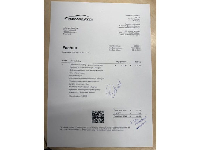 - Nieuwe distributieset , Nieuwe Oliepomp, Nieuwe Waterpomp , Alle filters vervangen , Alle vloeistoffen ververst , Bougies vervangen , Nieuwe APK