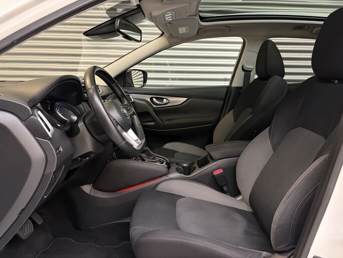 Er is volop leefruimte in deze Nissan Qashqai, een perfecte kruising tussen veelzijdigheid en comfort. Het is een krachtige viercilinder benzinemotor die deze SUV aandrijft. In deze Nissan profiteert u onder andere ook van: 18 inch lichtmetalen velgen, LED-dagrijverlichting, in hoogte verstelbare passagiersstoel, donker getint glas achter, in delen neerklapbare achterbank en LED-achterlichten.