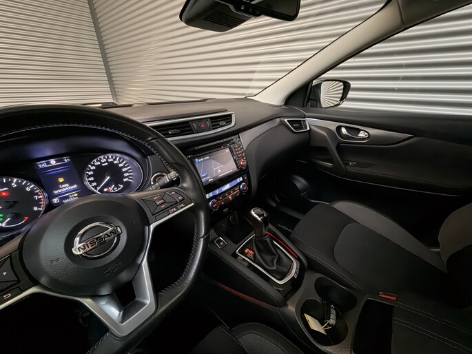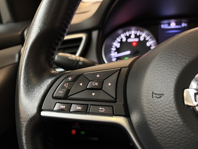 De 360 graden camera wordt mogelijk gemaakt door vier camera's die tezamen werken om zo een uitgebreid zicht te bieden, wat van grote waarde is bij het navigeren door smalle straatjes en parkeerplekken. De bediening van het audio-installatiesysteem en het full map navigatiesysteem gebeurt met knoppen op het stuur. De audio is overigens voorzien van DAB-radio voor een altijd heldere ontvangst. Natuurlijk is er ook automatische airconditioning aanwezig. U kunt bij het inparkeren natuurlijk niet aan alle kanten ogen hebben. Daarom is deze Nissan Qashqai voorzien van parkeersensoren! Achter het stuur van deze Nissan bent u niet alleen. De auto kijkt als het ware met u mee tijdens de rit. De regensensor schakelt de ruitenwissers in als het nodig is en de automatisch inschakelbare verlichting doet de lichten voor u aan. Ook cruise control, keyless entry, automatisch dimmende binnenspiegel en verstelbaar stuur horen tot de voorzieningen op deze auto.