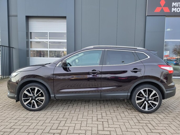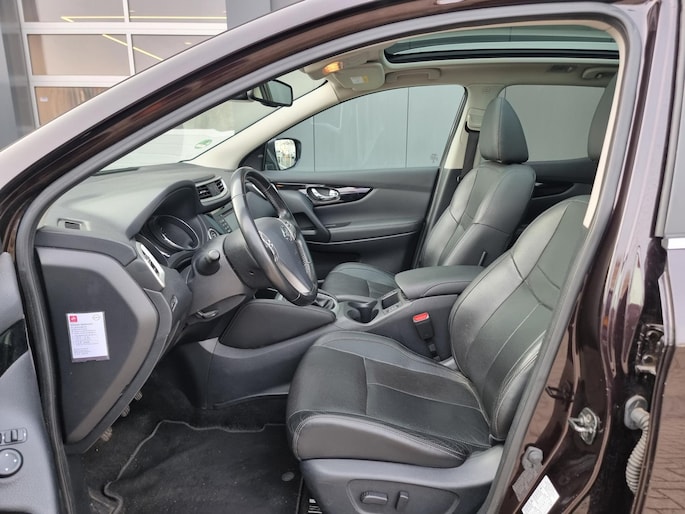 Laat u niets wijsmaken, deze Nissan Qashqai biedt alles wat u van een auto verlangt. Deze auto komt uit 2015. De aandrijving van deze Nissan wordt verzorgd door een viercilinder benzinemotor en een handgeschakelde zesversnellingsbak. Stijl en comfort krijg je erbij in de vorm van een fraai lederen interieur. De R in de maand? Dan is het tijd voor de luxe van de meegeleverde stoelverwarming! Het panoramadak geeft extra sfeer aan het interieur en biedt een prachtige doorkijk naar buiten. Bij de zeer complete uitrusting van deze auto behoren ook 19 inch lichtmetalen velgen, LED koplampen, extra getint glas en in delen neerklapbare achterbank.