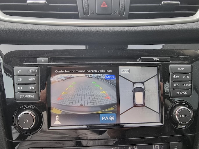 De vier camera's genereren samen een 360 graden beeld rond de auto, zodat u een volledig overzicht hebt van wat er rondom uw auto gebeurt. De auto is voorzien van een trekhaak en is een uitstekende caravantrekker. Het navigatiesysteem zorgt ervoor dat u altijd de juiste en snelste route vindt. Tot de standaard uitrusting van deze auto hoort ook automatische airconditioning. Met de DAB-ontvanger luistert u naar glasheldere digitale radio. Met cruise control, keyless entry, automatisch dimmende binnenspiegel en lederen stuur en versnellingspook is deze Nissan helemaal compleet.