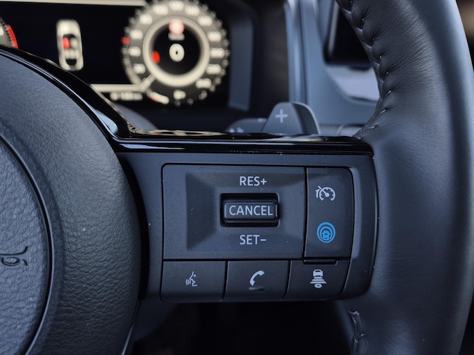 Het rijden met deze Nissan wordt nog meer ontspannen dankzij de innovatieve technieken die onderweg over uw veiligheid waken. De head-up display is een geweldige extra: ogen op de weg en toch alle belangrijke functies in beeld! In het instrumentarium laat de verkeersborddetectie de actuele verkeersborden zien. Keep your lane? Het Lane-keeping systeem zorgt er automatisch voor. Ook helpen het dodehoekdetector detectiesysteem, forward collision warning system, hill hold functie, brake assist, vermoeidheidsherkenning en bandenspanningcontrolesysteem, uw rit tot een veilige rit te maken.