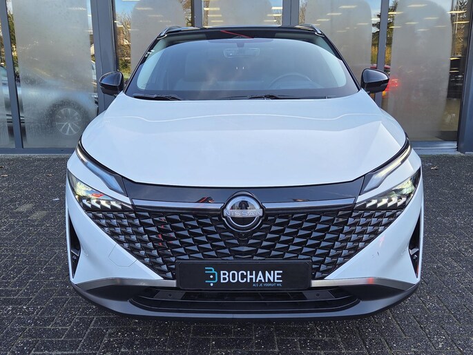 'Innovation that excites', beter kun je het niet omschrijven. Nissan. De aandrijving komt voor rekening van een benzinemotor en een automatische transmissie. Ga samen met uw bijrijder lekker zitten in de verwarmbare voorstoelen. Met een druk op de knop gaat de elektrische achterklep open. Een heerlijke hoeveelheid daglicht zorgt voor een riant en ruimtelijk effect door het glazen panoramadak. Als het buiten koud wordt, voelt zo'n verwarmd stuurwiel heerlijk aan. In deze auto profiteert u onder andere ook van: 18 inch lichtmetalen velgen, Full LED koplampen, dakspoiler, extra getint glas, in delen neerklapbare achterbank en LED-achterlichten.