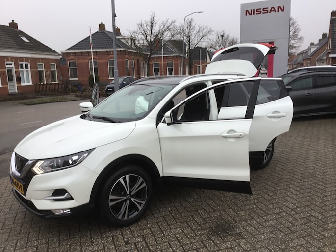 Dankzij de 360 graden camera kunt u zowel de voor- als achterzijde van het voertuig in het oog houden, wat bijdraagt aan een veiligere rijervaring. Zo'n lekkere jonge auto heeft natuurlijk leuke extra's, zoals remote services. Met een speciale app maakt u overal verbinding met de auto. Zo kunt u functies activeren en controleren. Bij de luxe van deze auto hoort ook automatische airconditioning. Superstrak parkeren wordt een eitje dankzij de parkeersensoren. Het luxeniveau in deze Nissan is niet alleen gericht op comfort, maar ook op uw veiligheid. Tal van sensoren helpen u om de omgeving in de gaten te houden. De automatisch inschakelbare verlichting zorgt dat automatisch de verlichting wordt ingeschakeld als het donker wordt, wat bijvoorbeeld in tunnels erg handig is. En de regensensor zet de ruitenwissers aan zonder dat u eraan hoeft te denken. De uitrusting van deze Nissan is met navigatiesysteem, DAB ontvangst, cruise control, keyless entry, automatisch dimmende binnenspiegel en verstelbaar stuur behoorlijk compleet.