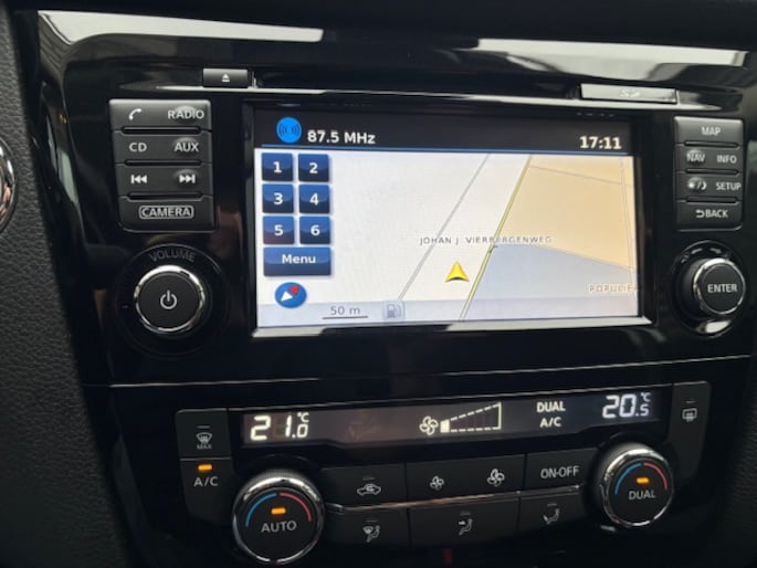 Zoals u mag verwachten van deze Nissan Qashqai is hij uitgerust met een reeks aan actieve veiligheidssystemen. In het instrumentarium laat de verkeersborddetectie de actuele verkeersborden zien. Deze Nissan Qashqai is voorzien van lane assist. Daarmee wordt u tijdig gewaarschuwd als u ongemerkt over de lijnen van uw rijstrook gaat. Mocht zich een gevaarlijke situatie voordoen, dan geeft de Brake Assist extra remkracht en verkort de remweg. Met voorzieningen als hill hold functie en bandenspanningcontrolesysteem, bent u altijd veilig onderweg.