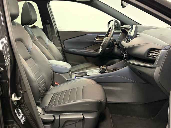 Via het digitale dashboard bent u permanent op de hoogte van alle informatie die u nodig heeft voor een veilige rit. De vier camera's genereren samen een 360 graden beeld rond de auto, zodat u een volledig overzicht hebt van wat er rondom uw auto gebeurt. Met adaptive cruise control houdt de auto zelfstandig afstand tot uw voorligger. Een veiligheidsverhogende optie waarmee u comfortabel onderweg bent. Communiceren met uw auto? Dat gaat via remote services. Met uw smartphone maakt u waar dan ook contact om allerlei functies te checken of te activeren. Deze Nissan is voorzien van knoppen op het stuur om het navigatiesysteem en het audio-installatiesysteem met DAB-ontvangst te bedienen. En deze auto heeft ook achteropkomend verkeer waarschuwing, kruisend verkeer detectie, automatische airconditioning, draadloos opladen, regensensor en keyless entry als standaard uitrusting.