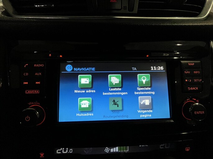 De vier camera's genereren samen een 360 graden beeld rond de auto, zodat u een volledig overzicht hebt van wat er rondom uw auto gebeurt. Locatie, motorconditie, storingen... via Connected Services krijgt u alle vitale info over de auto door. Ook handig bij pech! Het spreekt voor zich dat een auto als deze ook van automatische airconditioning is voorzien. Hoeveel ruimte u nog heeft bij het insteken? De parkeersensoren laten het weten! Da's gemakkelijk! Het drukke verkeer eist onderweg al uw aandacht op. Daarom is het goed dat deze Nissan is voorzien van diverse systemen die u assisteren tijdens de rit. Een automatisch inschakelbare verlichting neemt het waar als het donker wordt of gaat schemeren, en schakelt dan automatisch de verlichting in. Op dezelfde manier "ziet" de regensensor de eerste spatjes regen en schakelt dan de ruitenwissers in, en als het harder gaat regenen zet hij de ruitenwissers ook in een snellere stand. Wat u ook in deze auto kunt vinden zijn navigatiesysteem, DAB ontvangst, cruise control, keyless entry, automatisch dimmende binnenspiegel en lederen stuur en versnellingspook.
