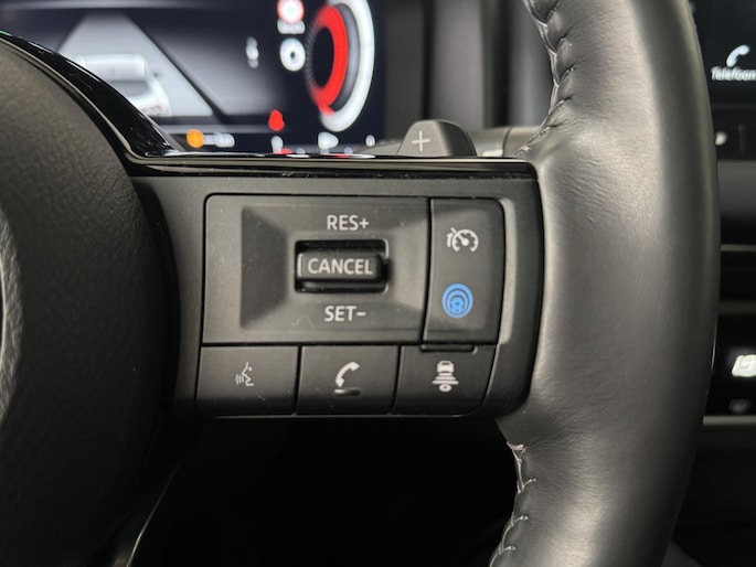 Stel de interface voor uw cockpit naar wens in met het digitale dashboard van deze auto. Het gebruik van de 360 graden camera op deze auto helpt u bij het navigeren door lastige rijbanen en het drukke stadsverkeer. Adaptive cruise control houdt de ingestelde snelheid vast en houdt automatisch afstand tot uw voorligger. De file assistent verzacht het fileleed door automatisch veilig afstand te houden tot de voorligger en zo nodig zelfs te stoppen als de rij tot stilstand komt. Als u 'm vraagt 'hoe gaat het?' geeft deze auto zelf het antwoord. Via de app op uw smartphone. U checkt de meters waar u maar wilt, of activeert diverse functies alvast. De Nissan is standaard voorzien van: premium audiosysteem, full map navigatiesysteem, achteropkomend verkeer waarschuwing, kruisend verkeer detectie, automatische airconditioning en draadloos opladen.