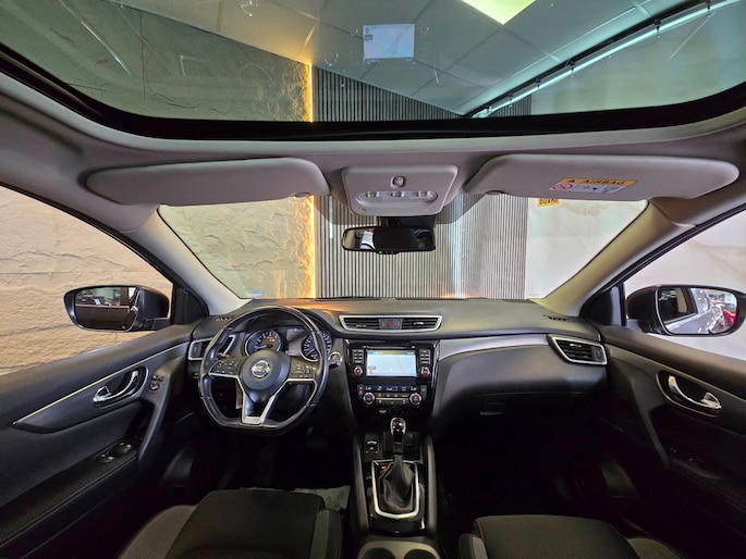 Toonaangevende techniek en een hoge mate van degelijkheid, dat zijn enkele van de eigenschappen van Japanse auto's. Dat ziet u terug in deze Nissan Qashqai. De aandrijving van deze Nissan wordt verzorgd door een viercilinder motor en een automatische transmissie. Het wijdse uitzicht door het glazen panoramadak maakt van elke rit een belevenis. Bij de uitrusting van deze auto horen onder meer 18 inch lichtmetalen velgen, LED-dagrijverlichting, in hoogte verstelbare passagiersstoel, extra getint glas, in delen neerklapbare achterbank en verstelbare lendensteunen.