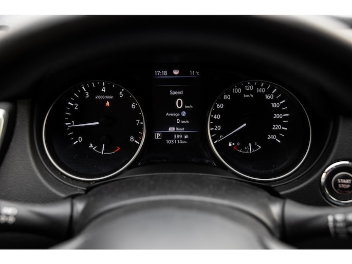 Zoals u mag verwachten van deze Nissan Qashqai is hij uitgerust met een reeks aan actieve veiligheidssystemen. Belangrijk voor uw veiligheid en die van uw passagiers is de verkeersbord-detectie in deze auto. Het Lane-keeping systeem garandeert dat u zich niet onverhoeds buiten de lijnen van de rijstrook begeeft. In een noodsituatie waarschuwt forward collision warning bij een dreigende aanrijding met een voorligger. Bovenop deze veiligheidsfeatures heeft deze Nissan bovendien dodehoekdetectie, hill hold functie, Abs - anti blokkeer systeem met brake assistant, vermoeidheidsherkenning en bandenspanningcontrolesysteem.