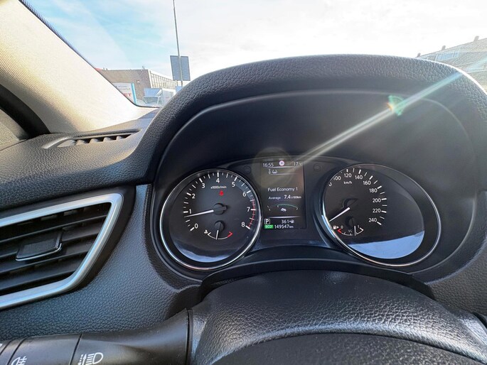 Nooit meer te warm of te koud. De automatische airconditioning zorgt altijd voor de temperatuur die u kiest. Met de aanwezige parkeersensoren weet u altijd zeker of het past. Natuurlijk is een complete auto als deze ook voorzien van sensoren die de omgeving in de gaten houden. Deze Nissan heeft niet alleen een automatisch inschakelbare verlichting aan boord, maar ook een regensensor. Zuinig zoeven, dat kan deze auto dankzij de aanwezige cruise control. Wat u ook in deze auto kunt vinden zijn automatisch dimmende binnenspiegel en lederen stuur.