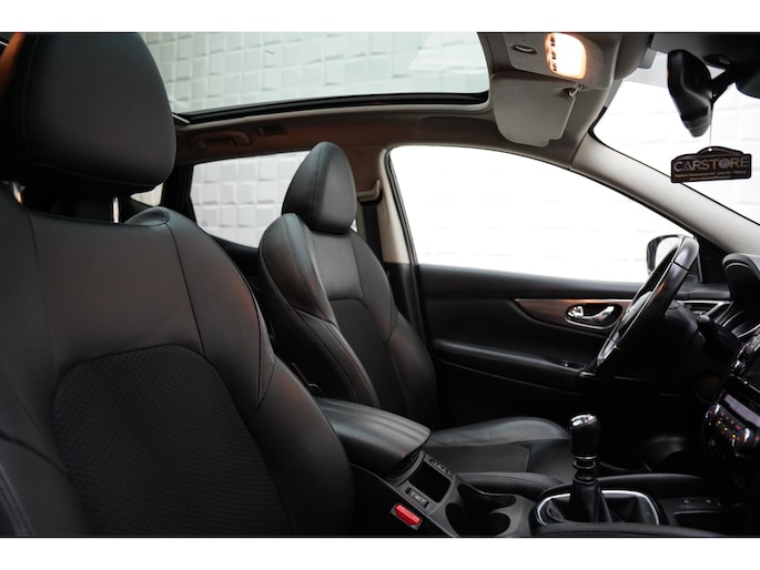 De Nissan Qashqai is een goed voorbeeld van Japanse bouwkwaliteit. De aandrijving van deze Nissan wordt verzorgd door een viercilinder motor en een handgeschakelde zesversnellingsbak. Stijl en comfort krijg je erbij in de vorm van een fraai lederen interieur. Behaaglijk onderweg zijn? Als bestuurder geniet u van de verwarmbare voorstoelen. Net als uw bijrijder! Het glazen panoramadak geeft u een ongekende rijsensatie: wat een licht en zicht! Bij de uitrusting van deze auto horen onder meer LED koplampen, extra getint glas, in delen neerklapbare achterbank, LED-achterlichten, verstelbare lendensteunen en snelheidsafhankelijke stuurbekrachtiging.