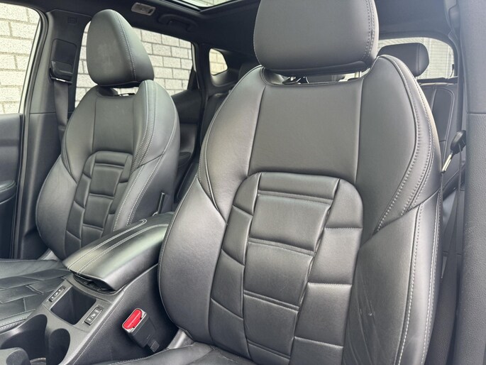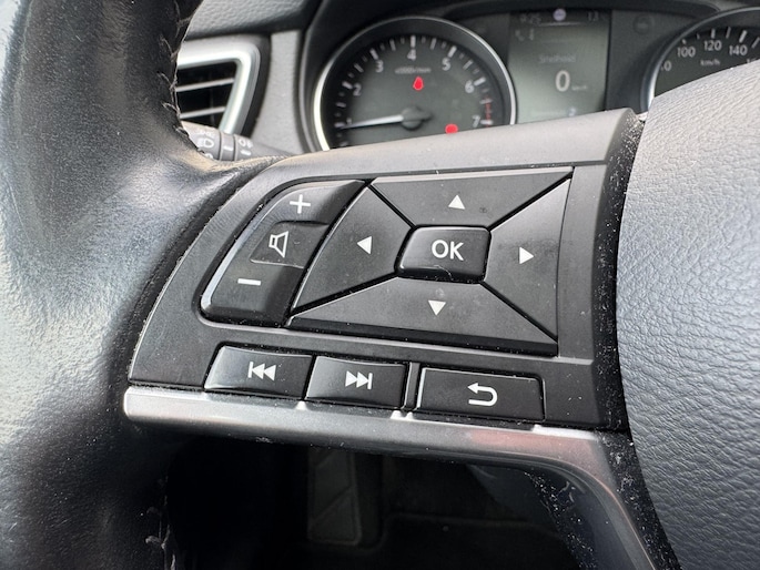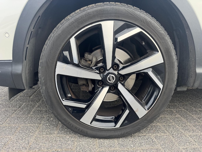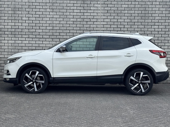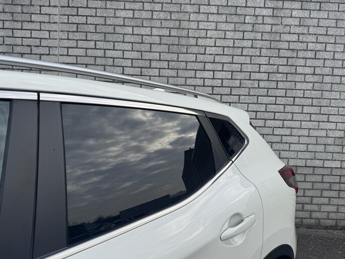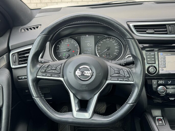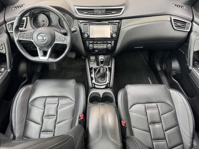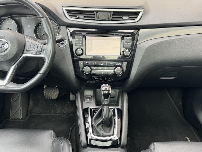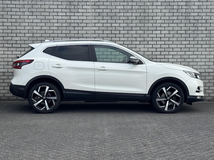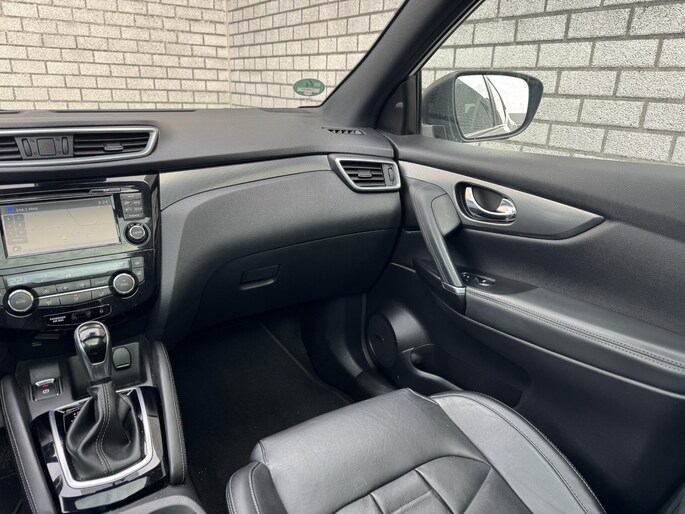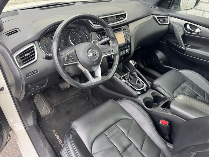 Deze Nissan Qashqai staat voor u klaar. Een geweldige, nog jonge occasion die goed is voor gemakkelijk nog een tonnetje of twee op de teller. De aandrijving van deze Nissan wordt verzorgd door een viercilinder benzinemotor en een automatische transmissie. De auto is uitgerust met stijlvolle, lederen bekleding. Deze Nissan Qashqai heeft verwarmbare voorstoelen, voor zowel bestuurder als bijrijder. Het glazen panoramadak laat meer licht binnen in het interieur en zorgt voor een magnifiek uitzicht naar buiten. In deze auto profiteert u onder andere ook van: 19 inch lichtmetalen velgen, LED koplampen, extra getint glas, in delen neerklapbare achterbank en verstelbare lendensteunen.