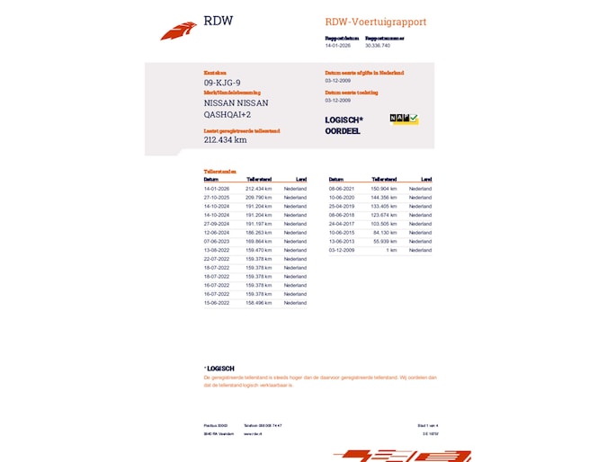 Kilometerstand gecontroleerd