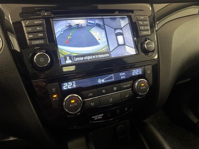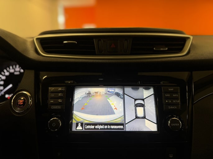 Met de hulp van vier camera's, biedt de 360 graden camera op deze auto een panoramisch zicht, wat bijzonder nuttig is bij het parkeren en manoeuvreren. Met de automatische airconditioning selecteert u de gewenste temperatuur. Het systeem doet de rest. Kom-maar-kom-maar...ho! Zo eenvoudig is het voordeel van parkeersensoren. En zo behulpzaam! Het luxeniveau in deze Nissan is niet alleen gericht op comfort, maar ook op uw veiligheid. Tal van sensoren helpen u om de omgeving in de gaten te houden. De automatisch inschakelbare verlichting zorgt dat automatisch de verlichting wordt ingeschakeld als het donker wordt, wat bijvoorbeeld in tunnels erg handig is. En de regensensor zet de ruitenwissers aan zonder dat u eraan hoeft te denken. Cruise control houdt automatisch de ingestelde snelheid vast. Het is een ideaal hulpmiddel om lange ritten comfortabeler te maken. En dan is deze auto ook nog eens voorzien van navigatiesysteem, DAB ontvangst, keyless entry, automatisch dimmende binnenspiegel, lederen stuur en toerenteller.