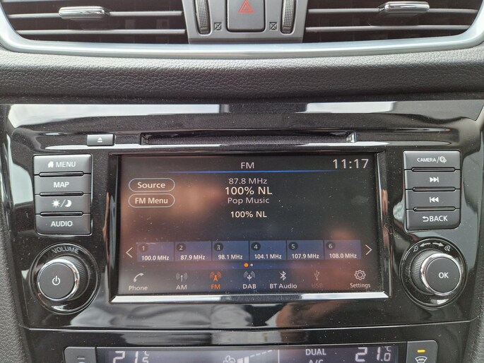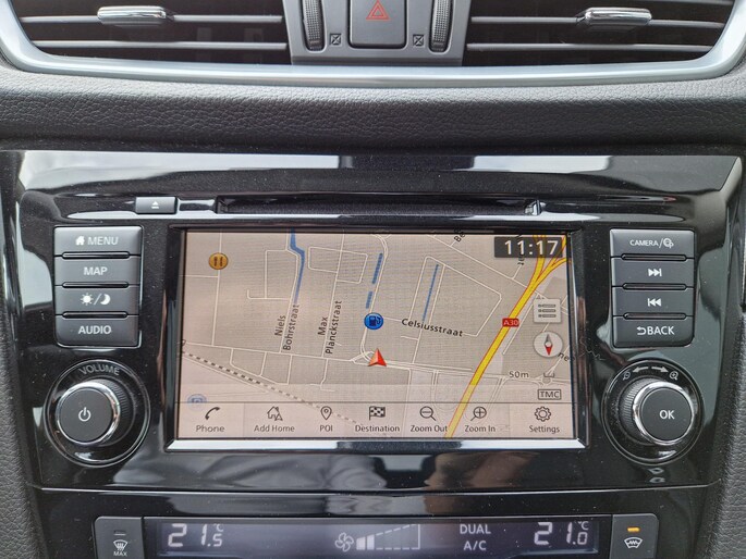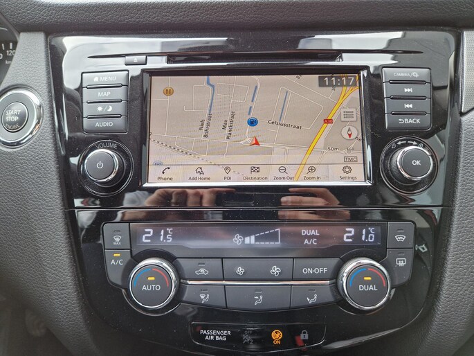 De 360 graden camera kan het blinde vlek probleem van de achteruitkijkspiegel oplossen, waardoor ongevallen worden voorkomen. Adaptive cruise control houdt de ingestelde snelheid vast en houdt afstand tot het voertuig voor u. Uw veiligheid op de weg wordt verhoogd door het audio-installatiesysteem met DAB-ontvangst en het full map navigatiesysteem te bedienen vanaf het stuur of met spraakbediening, zodat uw handen veilig op het stuur blijven en uw ogen gericht zijn op de weg. De automatische airconditioning zorgt onder alle omstandigheden voor een prettige temperatuur. De parkeersensoren waarschuwen wanneer u te krap inparkeert of dat ene paaltje niet hebt gezien. De uitrusting van deze Nissan is met regensensor, keyless entry, automatisch dimmende binnenspiegel en lederen stuur en versnellingspook behoorlijk compleet.