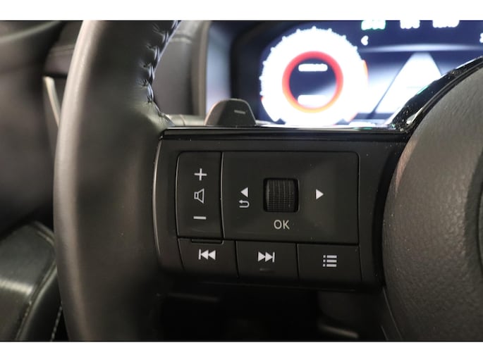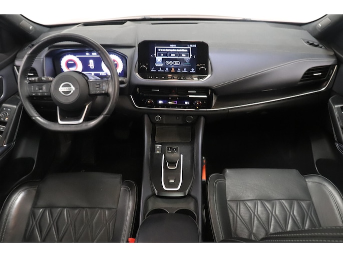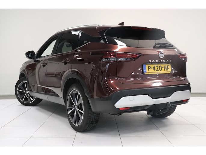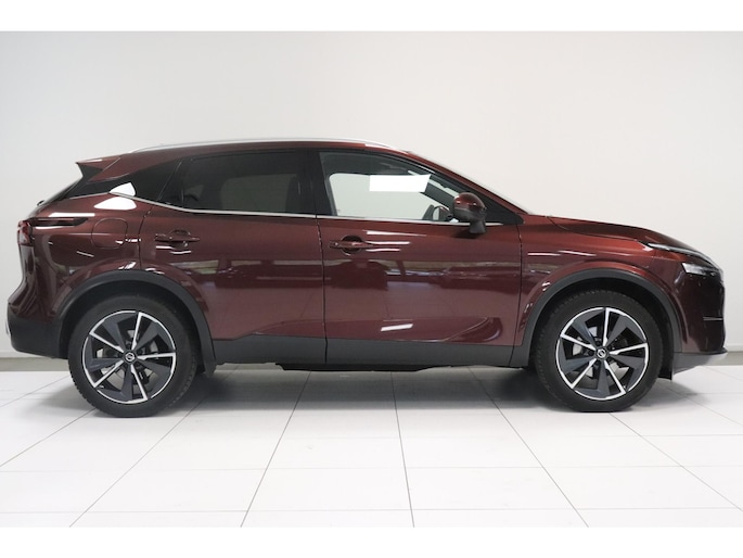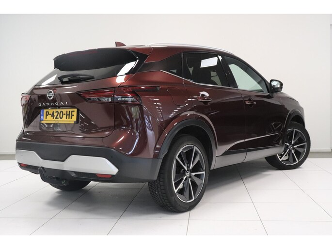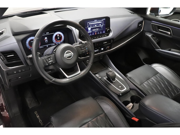 Het zijn de harmonieuze vormgeving en de hoogstaande technologie die de Nissan Qashqai zo begerenswaardig maken. In deze auto vindt u een viercilinder benzinemotor en een automatische transmissie. Met één klik ontgrendelt u de elektrisch bedienbare achterklep, die voor u openzwaait. Mooi hoe deze auto slim en praktisch nut koppelt aan een stijlvolle binnenkant. Heeft u het lederen interieur al gezien? Ga samen met uw bijrijder lekker zitten in de verwarmbare voorstoelen en laat jullie bloedsomloop stimuleren door de massagefunctie. U past de stoelen moeiteloos aan, ze zijn elektrisch in te stellen en hebben bovendien een geheugen. In weer en wind een cabriosensatie? Dat kan met het riante glazen panoramadak. Hoe koud het buiten ook is, het verwarmbare stuurwiel brengt uw handen en vingers snel weer op temperatuur. De koplampen zijn voorzien van de allernieuwste lichttechnologie: matrix LED-verlichting. Ook 19 inch lichtmetalen velgen, dakspoiler, extra getint glas, in delen neerklapbare achterbank, LED-achterlichten en verstelbare lendensteunen horen tot de voorzieningen op deze auto.