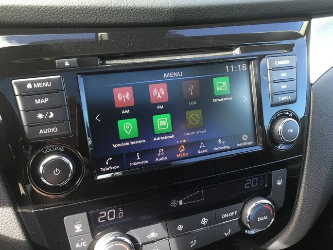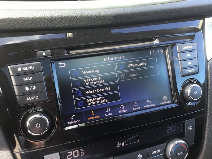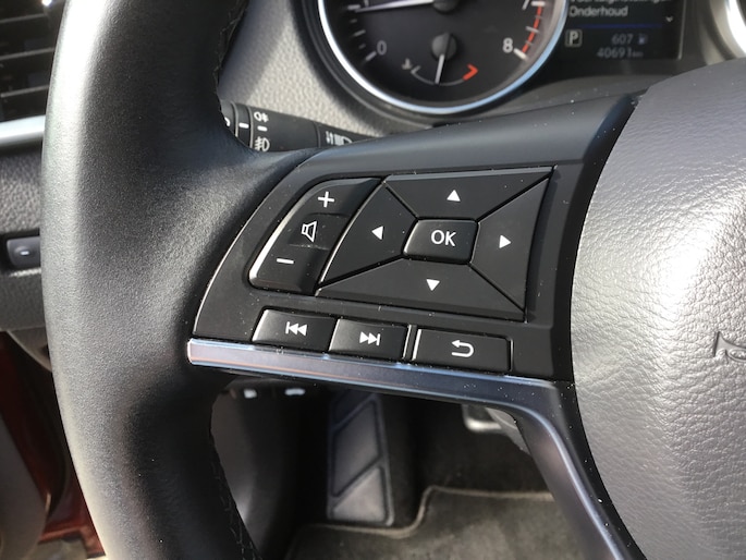 Het inventieve 360 graden camerasysteem op deze auto heeft de functie om u assistentie te bieden in nauwe ruimtes en straten, waar het achteruit rijden vaak een uitdaging is. Gemakkelijk en veilig is de spraakbediening voor het audio-installatiesysteem en het full map navigatiesysteem. Daarbij kunt u deze ook bedienen met de knoppen op het stuur. De audio-kwaliteit is geweldig, dankzij de DAB-ontvangst. De automatische airconditioning zorgt onder alle omstandigheden voor een prettige temperatuur. De parkeersensoren vertellen precies hoe ver u kunt gaan. Hoe dichter op een obstakel, hoe sneller de piepjes. Achter het stuur van deze Nissan bent u niet alleen. De auto kijkt als het ware met u mee tijdens de rit. De regensensor schakelt de ruitenwissers in als het nodig is en de automatisch inschakelbare verlichting doet de lichten voor u aan. Extra opties op deze auto zijn: cruise control, keyless entry, automatisch dimmende binnenspiegel en verstelbaar stuur.