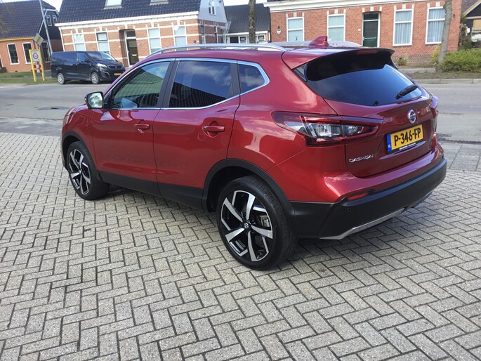 Met de kreet 'Innovation that excites' zegt Nissan precies wat dit merk zo populair maakt. Voorop in techniek en een plezier om te rijden! De krachtige motor geeft deze Nissan uitstekende prestaties. Hoge kwaliteit is ook binnenin aanwezig. Kijkt u maar naar de leren bekleding! 's Winters op pad gaan kan een behoorlijke uitdaging zijn. Daarom is deze Nissan Qashqai voorzien van weldadige verwarmbare voorstoelen. Rijden met pit? Geen punt! De sportstoelen geven steun en stevigheid! Het glazen panoramadak biedt u een breed zicht op de omgeving. Tot de voorzieningen van deze auto behoren 19 inch lichtmetalen velgen, LED koplampen, donker getint glas achter, in delen neerklapbare achterbank, LED-achterlichten en verstelbare lendensteunen.