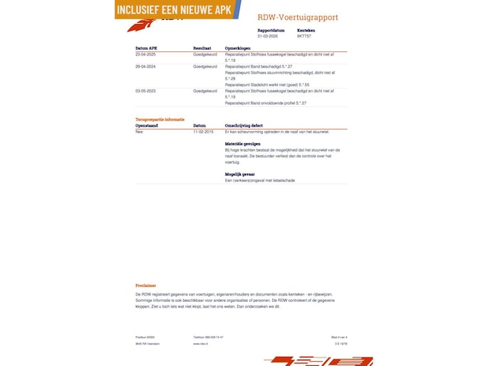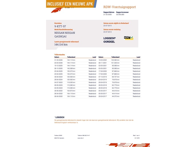 Kilometerstand gecontroleerd