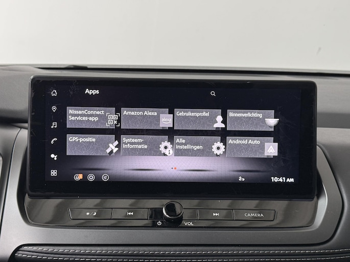 Deze Nissan is voorzien van verschillende intelligente veiligheidsvoorzieningen. Ze kijken tijdens het rijden als het ware met u mee, ze signaleren potentieel gevaarlijke situaties en in een aantal gevallen kunnen ze ook ingrijpen. Route- en rij-info aflezen van de voorruit? Met de head-up display hoeft u uw ogen geen seconde van de weg te halen! Tijdens de rit hebt u altijd een bijrijder, want de verkeersbord-detectie leest de borden langs de weg en projecteert ze voor u op het instrumentarium. Voorzien van het Lane-keeping systeem. Ofwel: blijf automatisch in je baan. De veiligheid van deze auto wordt verder verhoogd door dodehoekdetector detectiesysteem, forward collision warning system, hill hold functie, brake assist, vermoeidheidsherkenning en bandenspanningcontrolesysteem.