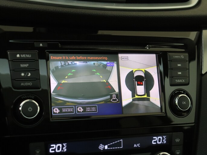 Zoals je mag verwachten van deze Nissan Qashqai is hij uitgerust met een reeks aan actieve veiligheidssystemen. De actuele snelheidslimiet, een inhaalverbod en andere verkeersborden; de verkeersborddetectie ondersteunt je tijdens elke rit. Mooi binnen de lijnen van de rijstrook blijven? Het Lane-keeping systeem helpt altijd een handje. Vermoeidheidsherkenning is een systeem dat met verschillende sensoren tekenen van vermoeidheid bij de chauffeur waarneemt. Deze krijgt tijdig een waarschuwing, wat ongelukken kan voorkomen. Ook helpen het dodehoekdetectie, hill hold functie, brake assist en bandenspanningcontrolesysteem, jouw rit tot een veilige rit te maken.