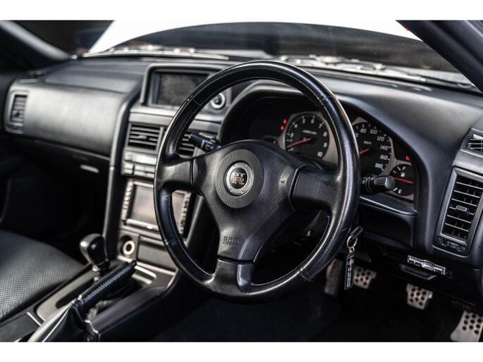 Inside, the cabin remains largely unmodified, retaining its original trim, upholstery, and factory MFD. Mechanically, the car performs as it should, with the legendary RB26DETT running smoothly and delivering the unmistakable twin-turbo surge. The only deviations from stock are upgraded air filters and an Apexi boost controller, leaving this GT-R a prime candidate for preservation or tasteful OEM+ enhancements.