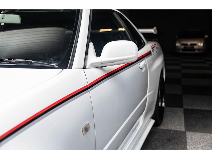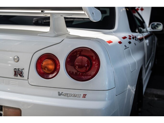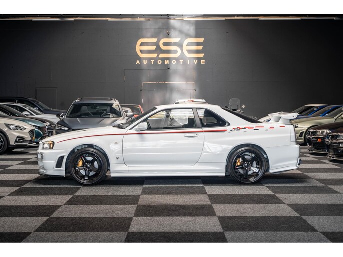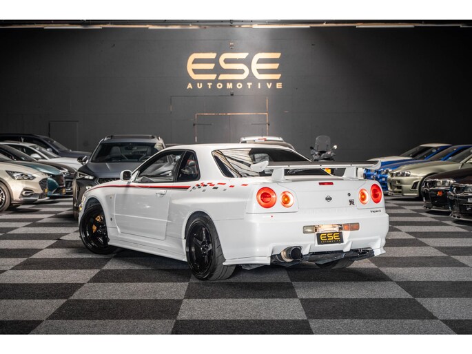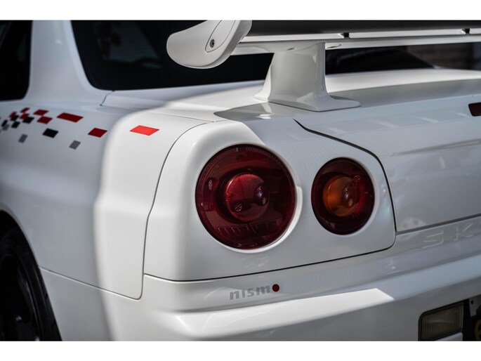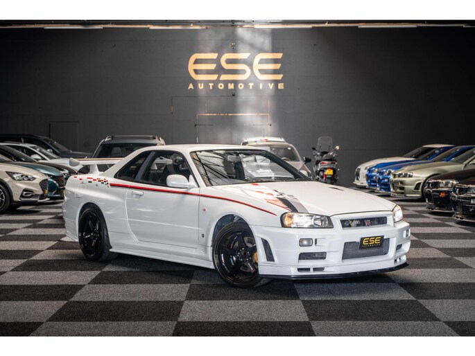 A collector-grade R34 GT-R V-Spec II with Nismo livery and ultra-desirable LMGT4 wheels.