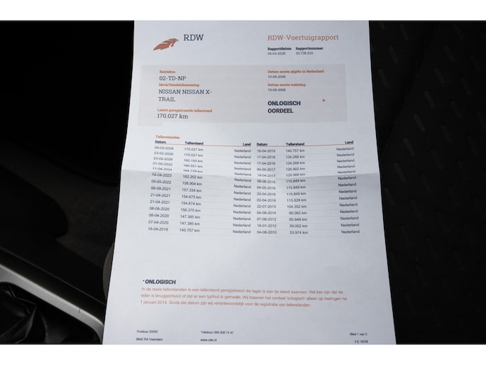 Kilometerstand gecontroleerd