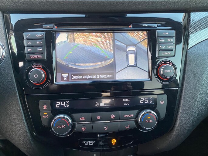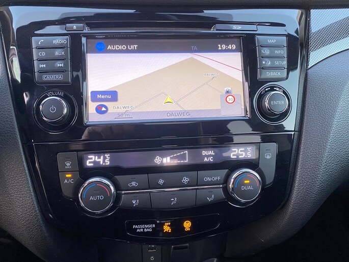 Parkeer en kijk niet om! De achteruitrijcamera doet dat voor u. De auto is voorzien van een trekhaak en is een uitstekende caravantrekker. U kunt het audio-installatiesysteem met DAB-ontvangst en het navigatiesysteem bedienen met de knoppen op het stuur. Natuurlijk is een complete auto als deze ook voorzien van sensoren die de omgeving in de gaten houden. Deze Nissan heeft niet alleen een automatisch inschakelbare verlichting aan boord, maar ook een regensensor. Niet te snel, niet langzaam maar precies goed: laat dat maar over aan de cruise control. Natuurlijk behoren automatisch dimmende binnenspiegel, lederen stuur, isofix-aansluiting, usb-aansluiting, centrale deurvergrendeling met afstandsbediening en boordcomputer ook tot de uitrusting van deze complete auto.