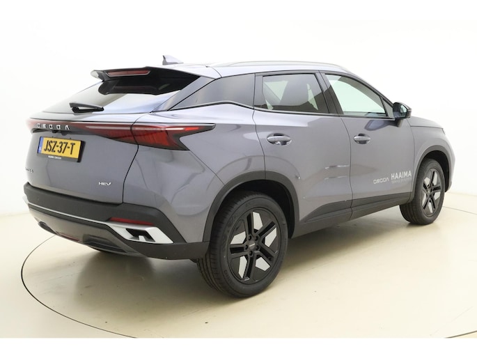 Laat u niets wijsmaken, deze Omoda 5 biedt alles wat u van een auto verlangt. Het gaat hier om een nieuwe auto, die uit voorraad leverbaar is. Brandstofmotor, elektromotor? Deze hybride Omoda 5 combineert ze. En dat is te merken bij de pomp, want die ziet u voortaan minder vaak. Licht en lucht komen onbelemmerd binnen als u het elektrisch bediende glazen panorama dak met één druk op de knop opent. En net zo gemakkelijk gaat de elektrisch bedienbare achterklep open. De stoelen zijn verwarmd en bieden ook in winterse kou een comfortabele zit. Pak aan, 't is winter! Zo'n verwarmd stuurwiel is dan bijzonder prettig! In deze Omoda profiteert u onder andere ook van: 18 inch lichtmetalen velgen, LED koplampen, geluidsisolerende ramen, dakspoiler, in delen neerklapbare achterbank en LED-achterlichten.