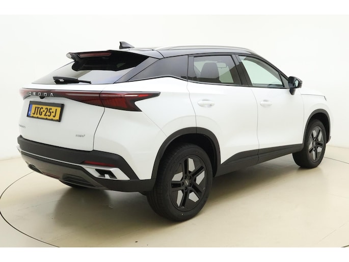 Natuurlijk, dit is een innovatieve auto met zijn hybridetechniek. Maar het is bovendien ook een auto die is gebouwd voor jarenlang rijcomfort. De pluspunten van rijden op benzine en rijden op elektriciteit zijn soms lastig te vergelijken. Dus komt de hybride motor van deze Omoda 5 mooi uit. De perfecte combi! In weer een wind een cabrio-gevoel? Daarvoor zorgt het elektrisch bediende glazen panorama dak. En het moeiteloos in- en uitladen is te danken aan de elektrisch bedienbare achterklep. Op koude en donkere dagen zijn de verwarmbare voorstoelen een uitkomst. Comfortabel zitten, ook als de rit onstuimig is? Dat kan met de sportstoelen. Opwarmen in koude dagen? Pak het verwarmd stuurwiel met beide handen aan! Tot de uitrusting van deze Omoda behoren ook 18 inch lichtmetalen velgen, LED koplampen, geluidsisolerende ramen, dakspoiler, in delen neerklapbare achterbank en LED-achterlichten.