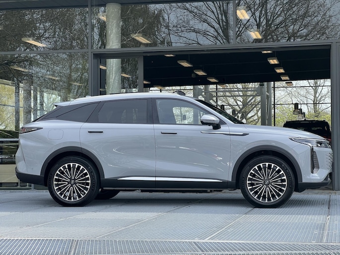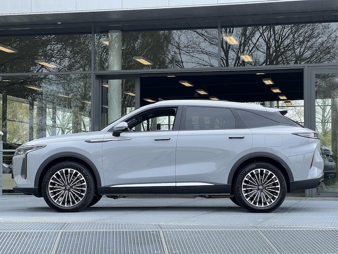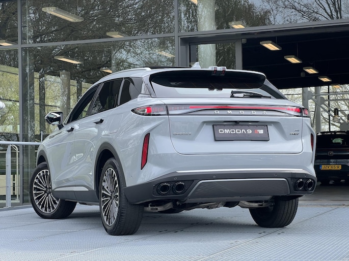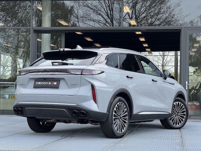 Bij Bochane Tilburg hebben we een uniek exemplaar binnengekregen: de indrukwekkende Omoda 9 Premium. Dit is het model waarmee Omoda direct de toon zette in de markt voor high-end SUV's. In de verfijnde kleur Tech Gray Metallic staat hier een auto die luxe en techniek naar een heel nieuw niveau tilt. Met een systeemvermogen van maar liefst 538 PK (395 kW) en vierwielaandrijving (AWD) is dit een van de krachtigste plug-in hybrides die u kunt rijden. Direct uit voorraad leverbaar!