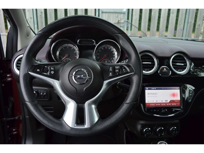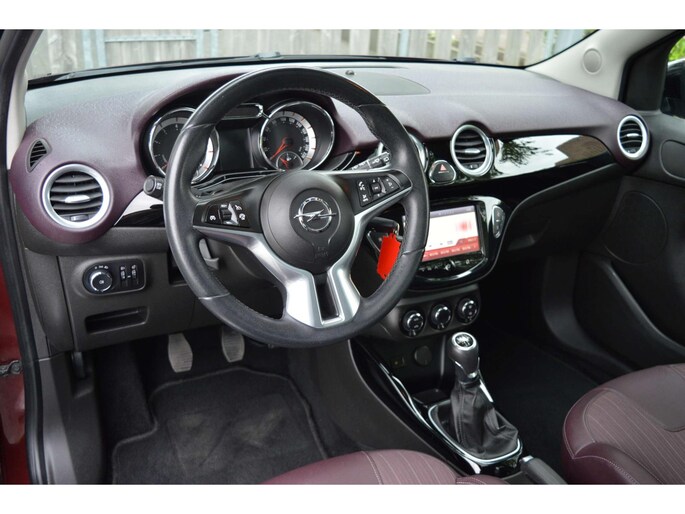 Opel Adam 1.4 Jam, voorzien van o.a.: automatische airco, centrale vergrendeling op afstand, origineel audiosysteem, multifunctioneel stuurwiel, half-lederen interieur, afwijkende dak kleur, cruise control, panoramadak, elektrische ramen, buitenspiegels elektrisch verstelbaar, voorstoelen in hoogte verstelbaar, lichtmetalen velgen, mistlampen voor, chroompakket exterieur, onderhoudsboekjes ingevuld aanwezig.