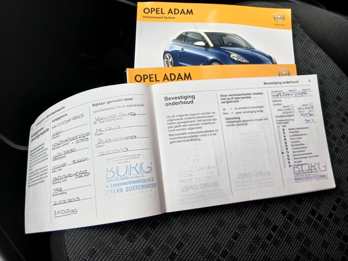 Mooie Opel Adam uit 2013 door Opel Van der Burg nieuw geleverd en altijd bij ons onderhouden.