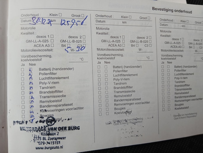 Laatste onderhoudsbeurt is uitgevoerd bij km. stand 125.956 op 30-12-2025.