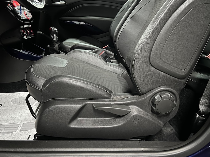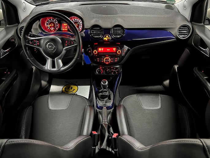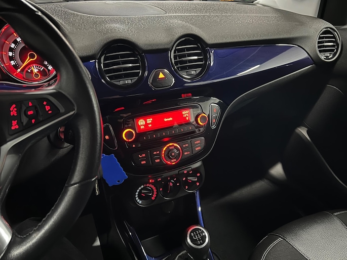 De Glam-uitvoering staat bekend om zijn rijke uitrusting en moderne uitstraling. Zo beschikt deze Opel ADAM over airco, half-lederen bekleding, cruise control, elektrische ramen, multifunctioneel lederen stuurwiel, Bluetooth, regensensor, LED-dagrijverlichting en lichtmetalen 16” velgen. Dankzij het stijlvolle blauw metallic lakwerk met afwijkende dakkleur en de chroomaccenten oogt deze auto bovendien zeer verzorgd en onderscheidend.