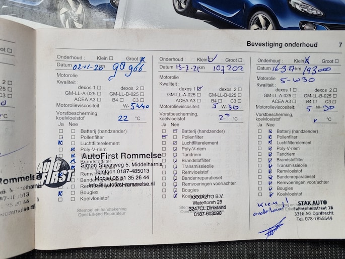 Onderhoudsboekjes: Aanwezig