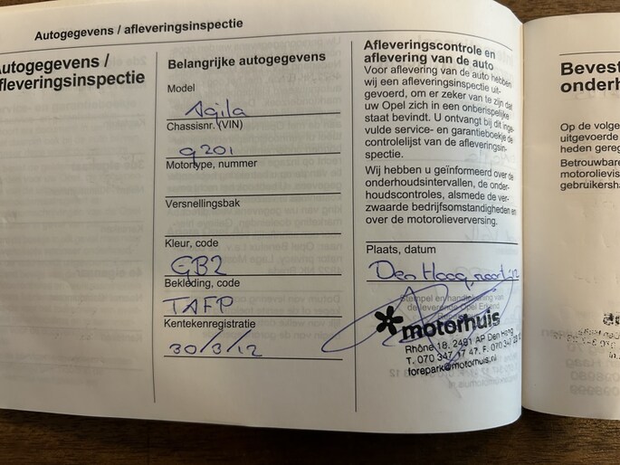 Onderhoudsboekjes: Aanwezig