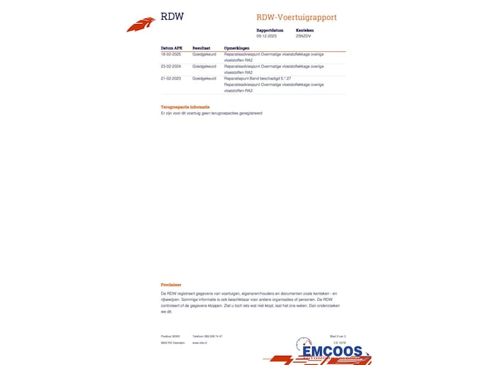 | Wegenbelasting/3mnd | € 114 - € 125 |