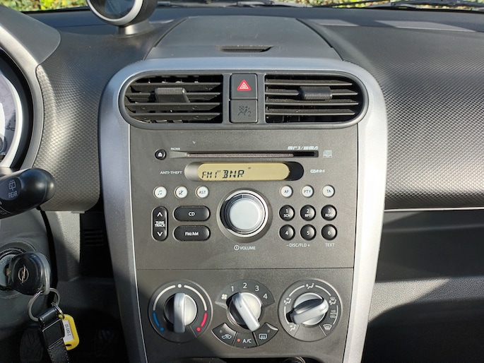 Maar wel voorzien van Airco, Lichtmetalen velgen, radio- CDspeler, stootlijsten op de portieren en extra getint glas vanaf de B-stijl.