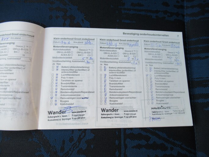 Onderhoudsboekjes: Aanwezig
